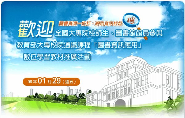 教育部電算中心為發展數位教育與網路學習,委託旭聯科技股份有限公司承辦「大專校院通識課程圖書資訊應用數位教材開發及課程實施計畫」,以系統化發展數位教材融入教學為目標,透過跨校跨業合作發展「圖書資訊應用」數位學習課程,提供全國大專院校學生、教師、圖書館館員更優質的多媒體數位教材。 教材試讀GO!