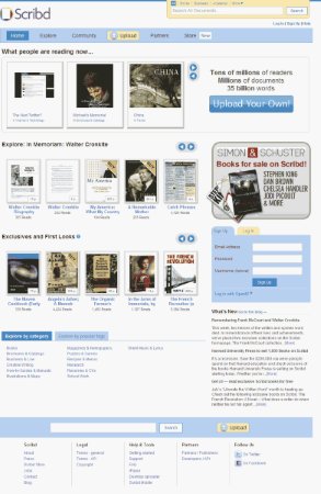 由三個年僅20幾歲的小伙子創辦的電子書網站Scribd,號稱每月吸引6,000萬人次瀏覽,堪稱最受歡迎的文件分享網站。Scribd以獨特的經營模式與作家和出版商合作銷售電子書,在網路書店龍頭亞馬遜的壓力下找到生存的利基。